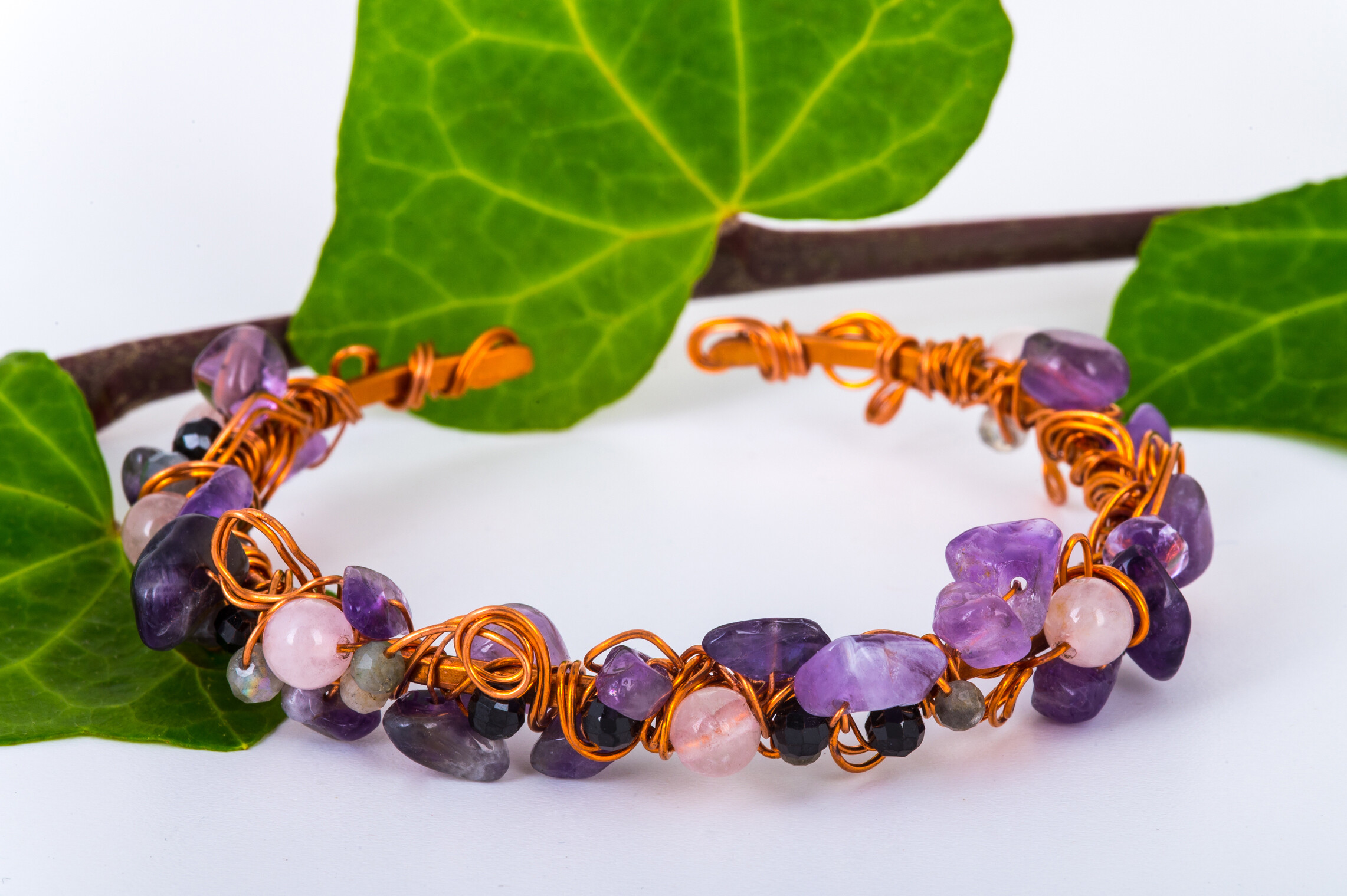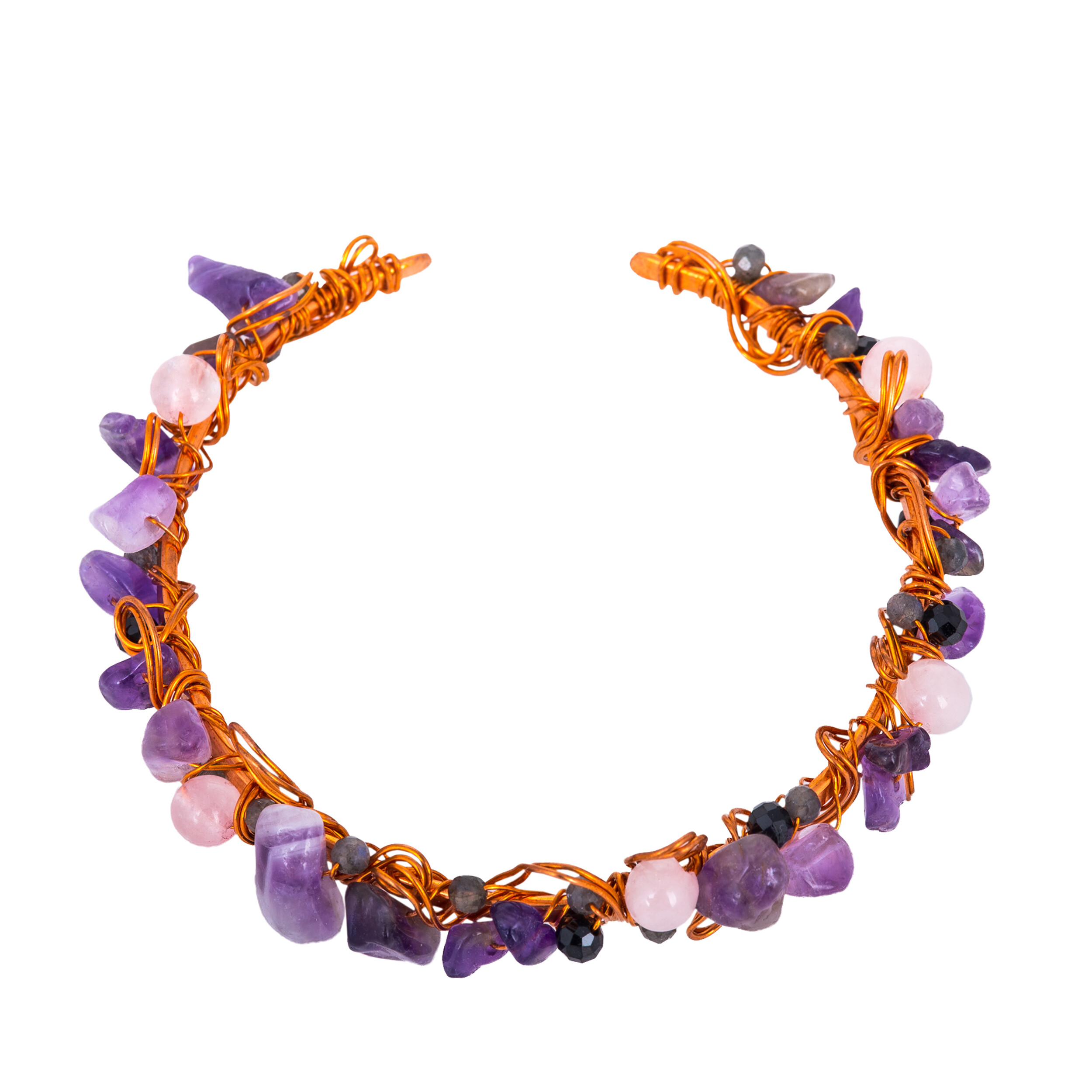 Kamień: ametyst, kwarc różowy, turmalin, labradoryt