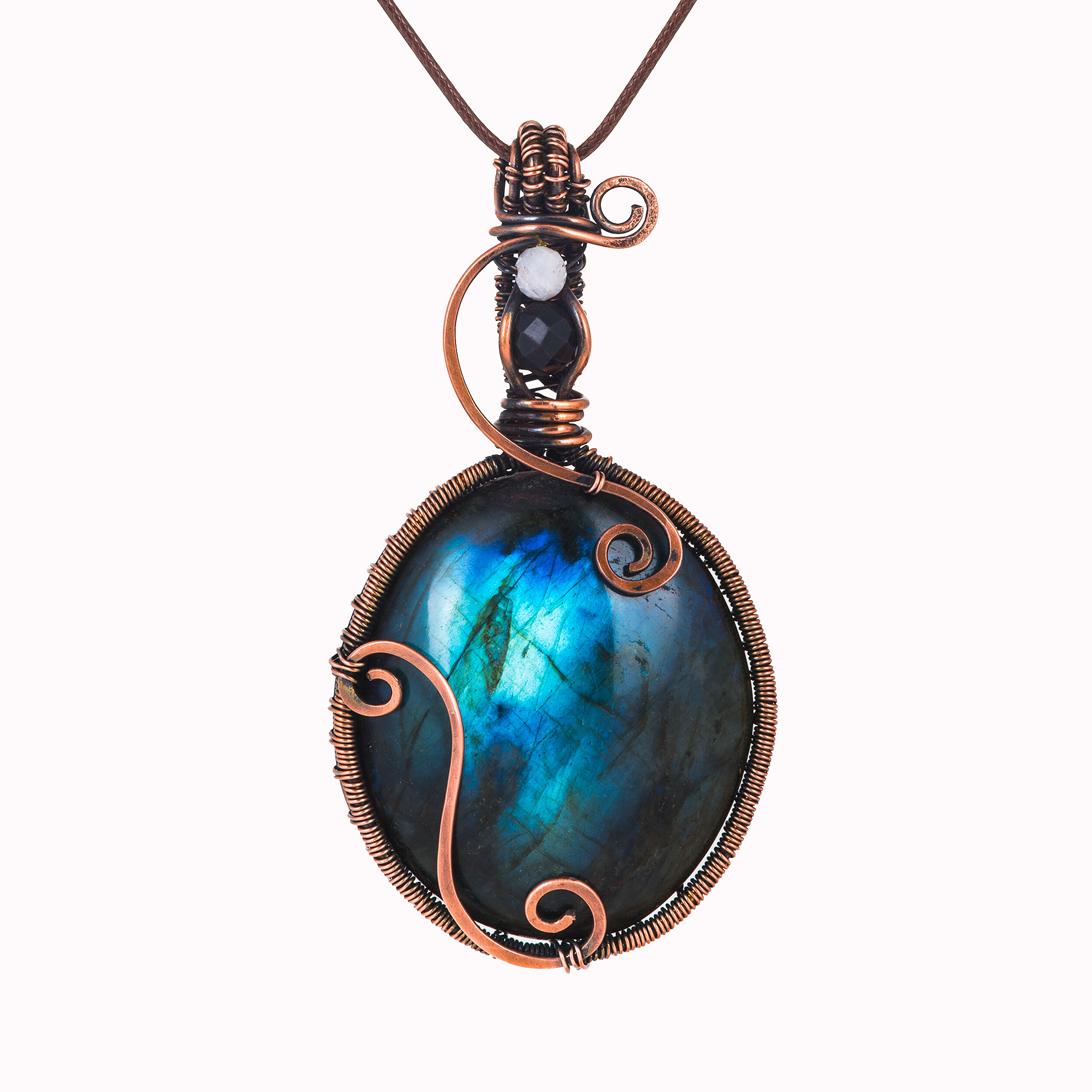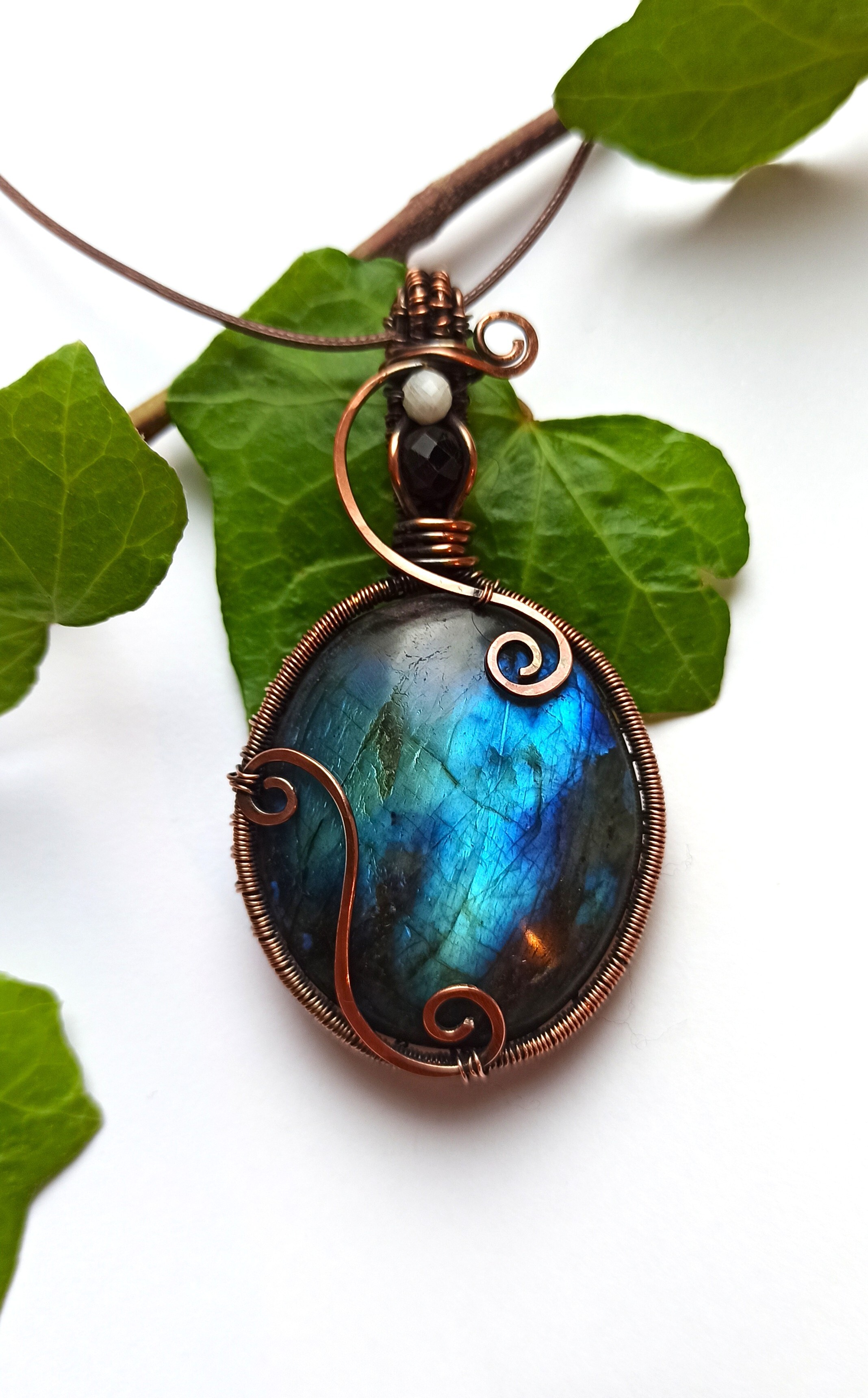 Kamień: labradoryt, czarny fasetowany turmalin, kamień księżycowy
